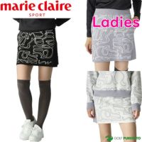 ブラック グレー ホワイト 【レディース】マリ・クレール スカート リボンロゴニットスカート 735-352 ゴルフウェア ボトムス 保温 ストレッチ2025年秋冬モデル marie claire マリクレール 秋冬ウェア 女性用