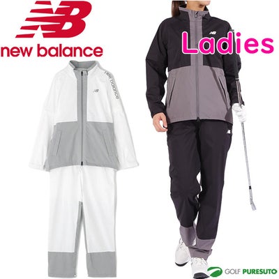 ブラック ホワイト 【レディース】ニューバランス ゴルフ 透湿防水 防風 セットアップ レインウェア 上下セット ジャケット パンツ 012-5988501 ゴルフウェア レインスーツ レインコート 2WAY 長袖 半袖 女性用
