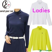 ネイビー ホワイト ライムイエロー 【レディース】アンパスィ 長袖 モックネックシャツ ショットスムーザー AFS9224V4 トップス ゴルフウェア 春夏モデル and per se 春夏ウェア 女性用