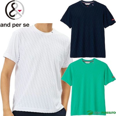 ホワイト ネイビー グリーン アンパスィ 半袖 Tシャツ ドライジャカードパイル メンズ AMS6604V8 トップス ゴルフウェア 春夏モデル and per se 春夏ウェア