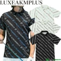ブラック×ブルー ホワイト×ターコイズ ホワイト ブラック リュクスエイケイエムプラス ゴルフ 半袖 ポロシャツ 総柄ロゴ メンズ LAH-24004 トップス ゴルフウェア 2024年春夏モデル LUXEAKMPLUS 春夏ウェア