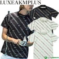 ブラック ブラック×ブルー ホワイト ホワイト×ターコイズ リュクスエイケイエムプラス ゴルフ 半袖 モックネックシャツ 総柄ロゴ メンズ LAT-24004 トップス ゴルフウェア 2024年春夏モデル LUXEAKMPLUS 春夏ウェア