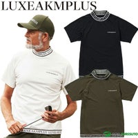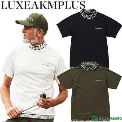 ブラック ホワイト カーキ リュクスエイケイエムプラス 半袖 モックネックシャツ Tシャツ ゴルフ カラーロゴ メンズ LAT-25003 LAT25003 2025年春夏モデル LUXEAKMPLUS 春夏ウェア 吸湿 UVカット 遮熱 ゴルフウェア