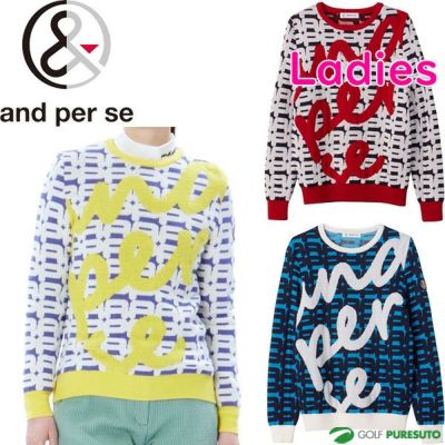パープル ホワイト ブルー 【レディース】アンパスィ 長袖 ウールmixジャカードニット クルーネックセーター AFF2333C8 セーター ゴルフウェア 2023年秋冬モデル and per se 秋冬ウェア 23FW 女性用