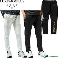 ブラック ホワイト リュクスエイケイエムプラス × ロアー コラボレーション ゴルフ ロングパンツ バックロゴ防風 メンズ LAB-23051R ボトムス ゴルフウェア 2023年秋冬モデル LUXEAKMPLUS × roar 秋冬ウェア