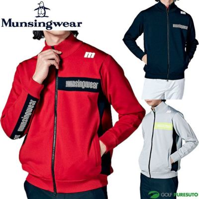 ブラック グレー レッド マンシングウェア 長袖 フルジップ 前開きセーター ニット メンズ MEMWJL01 ENVOY 防風袖ネオンサインジャカード エンボイ ゴルフウェア 2023年秋冬モデル Munsingwear 秋冬ウェア ジャガード