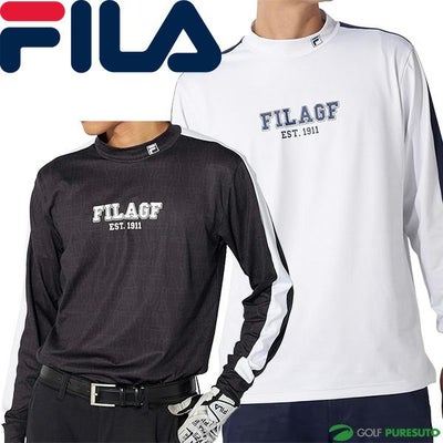 ブラック ホワイト フィラ ゴルフ 長袖 モックネックシャツ 裏起毛 メンズ 784-510 トップス ゴルフウェア 2024年秋冬モデル FILA GOLF 784510 秋冬ウェア 保温 UVカット リサイクルポリエステル