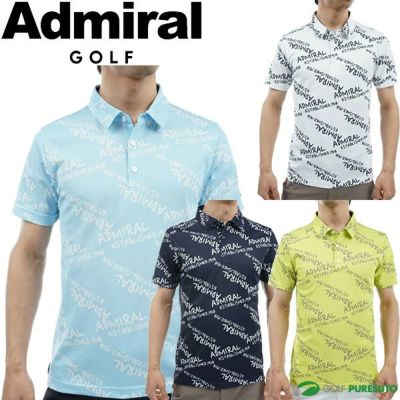 サックス ホワイト ネイビー ライムグリーン アドミラル ゴルフ 半袖 ポロシャツ ランダムロゴ プリントシャツ メンズ ADMA433 トップス ゴルフウェア 2024年春夏モデル Admiral Golf 春夏ウェア