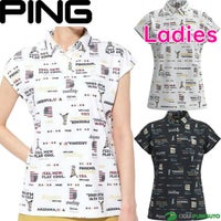 ホワイト ネイビー 【レディース】ピン アパレル ゴルフウェア フレンチスリーブポロシャツ 半袖 ポロシャツ 622-3160306 ハローアリゾナプリント 2023年春夏モデル PING 春夏ウェア 23SS 女性用