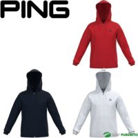 レッド ネイビー ホワイト ピン アパレル 長袖 フルジップ フーディー ネイティブ柄 キルティング メンズ 621-2242001 アウター ブルゾン パーカー ゴルフウェア 2022年秋冬モデル PING APPAREL 秋冬ウェア アパレル