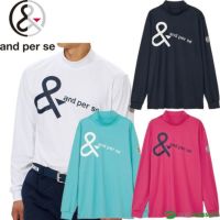 ホワイト ネイビー スカイ ローズピンク アンパスィ 長袖 モックネックシャツ マシュマロジャージー メンズ AMF9225W2 トップス ゴルフウェア 2025年秋冬モデル and per se 秋冬ウェア