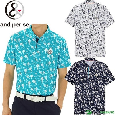 ターコイズ ホワイト ネイビー アンパスィ 半袖 ポロシャツ ソルケアプリンテッド メンズ AMS9685X9 トップス ゴルフウェア 2025年春夏モデル and per se 春夏ウェア