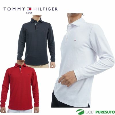 ホワイト ネイビー レッド トミーヒルフィガー ゴルフ モノグラム ジャカート 長袖 シャツ THMA453 ゴルフウェア トップス 2024年秋冬モデル TOMMY HILFIGER