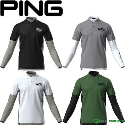 ブラック グレー ホワイト グリーン ピン アパレル レイヤードツインセット 半袖ポロシャツ 長袖シャツ メンズ 621-5160201 トップス 2025年春夏モデル PING APPAREL 春夏ウェア 長袖インナーシャツ 重ね着