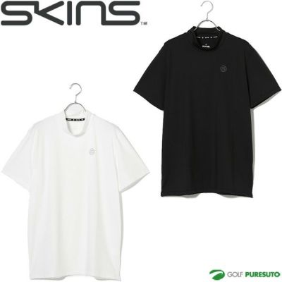 ホワイト ブラック スキンズ 半袖 シャツ GOLF シンプルショートモックネックプルオーバー メンズ 187-21340 SKINS ゴルフ 吸水速乾 UVカット 抗菌防臭 接触冷感 春夏ウェア