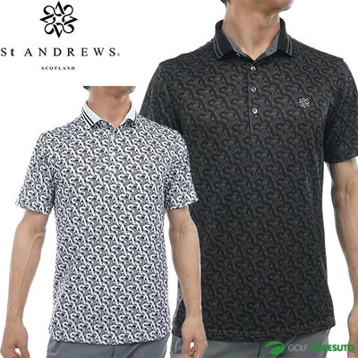 ブラック ホワイト セント・アンドリュース 半袖 ポロシャツ エアロクールピケSAモノグラム柄 メンズ 042-5160555 トップス ゴルフウェア 2025年春夏モデル St ANDREWS セントアンドリュース 0425160555 春夏ウェア