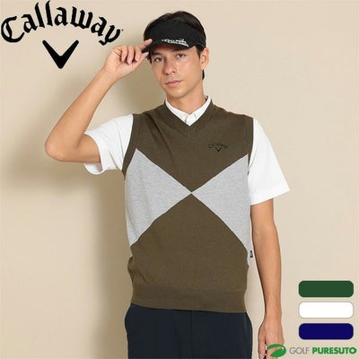 カーキ ホワイト ネイビー キャロウェイ Vネックニットベスト アーガイル 綿タッチ メンズ C24119102 トップス ゴルフウェア Callaway golf 春夏モデル 春夏ウェア 24SS