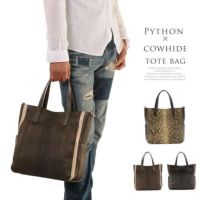 パイソン & 牛革 トートバッグ 日本製 ショルダーバッグ (No.06000464-mens-1)【■SAN■】