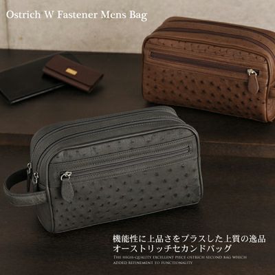 オーストリッチ Wファスナーセカンドメンズバッグ (No.9509)【■SAN■】 おしゃれ
