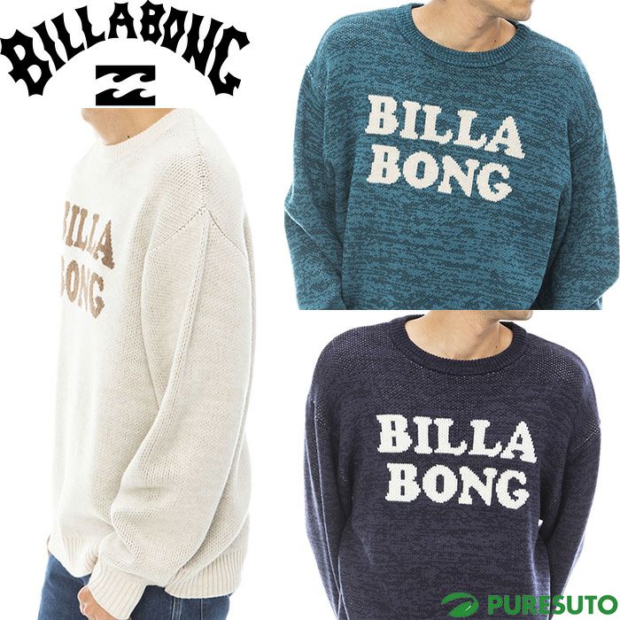 フロントにBILLABONGロゴを2段で編み込んだクルーネックニット。