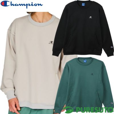 オックスフォードグレー ブラック ミッドグリーン チャンピオン Champion 長袖 クルーネックスウェットシャツ テックウィーブ テリー 24FW メンズ C3-AS004 2024年秋冬モデル トップス 秋冬ウェア スポーツ ストレッチ 保温